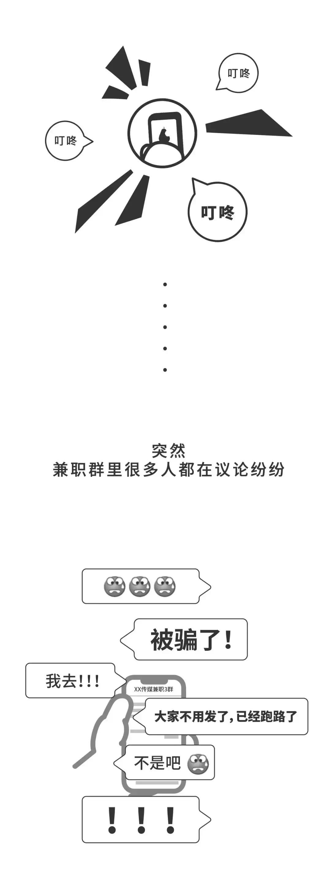 1、利用朋友圈等渠道传播兼职信息,并以高大上的招聘宣传图、快速回本的诱饵吸引受害者,以各种理由索要押金、会员等费用;