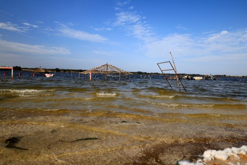 塞内加尔雷特巴湖位于塞内加尔首都达喀尔北部,因湖中生长的嗜盐微生物作用,在特定的季节和阳光照射条件下,湖水呈玫瑰色,因而得名“玫瑰湖”。近期,因大量洪水冲淡湖水含盐量并污染湖水,雷特巴湖的玫瑰色湖水变为绿色。