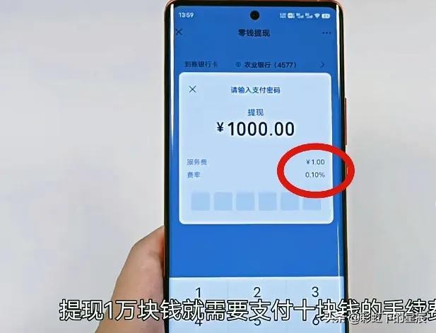 目前从微信提现1000元,要收取0.10%续率,也就是1元,1万元就要10元,100万就要1000元,是不是很不划算!