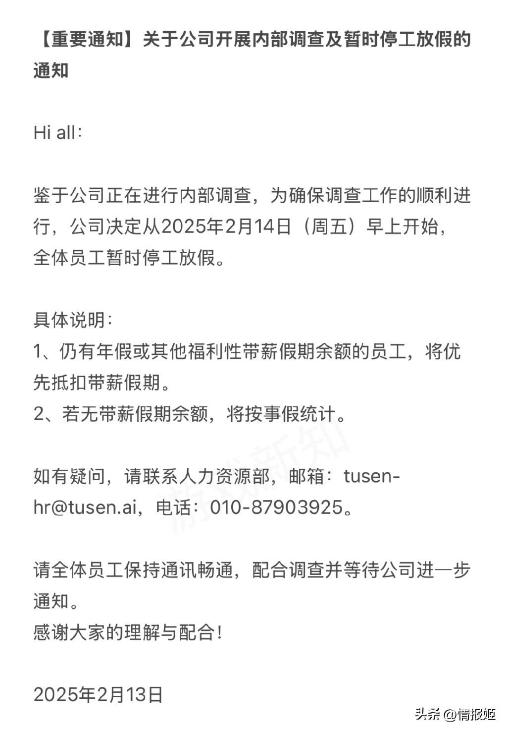 因为这件事,母公司才过来突击检查,并以此事为由,让全体员工暂时停工休息。