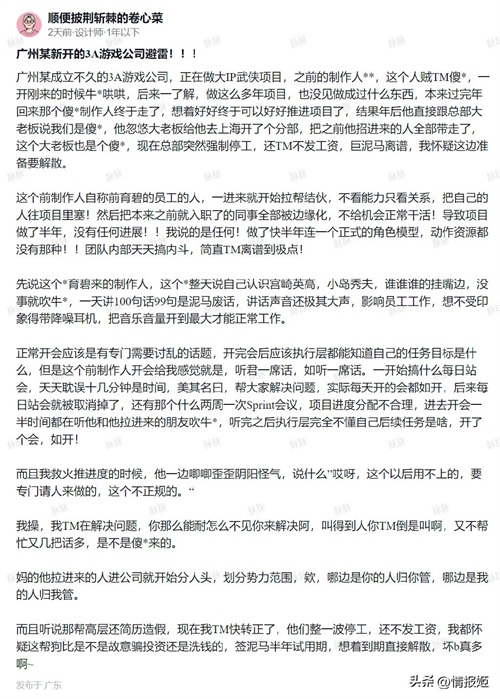 总部突击清算、公司内鬼、员工锁门抗议,再加上脉脉传出游戏制作人过度包装自己、拉帮结派的事情,以及负责人开除制作人的事件,听起来整个公司似乎早已陷入管理混乱的状态。