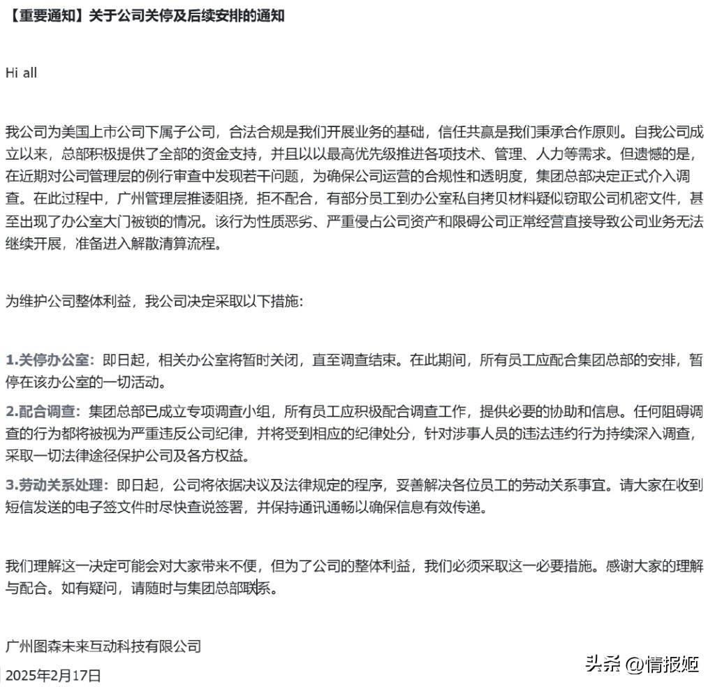 而母公司也以此为由,认为既然大家不愿意交涉,那就直接进入解散清算流程。于是便有了上文提到的那则通知。