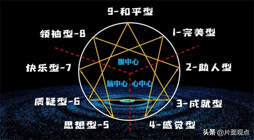 九型人格将人格分为九大类型,你我他都必然属于其中一个类型!虽然每个人都有一个基本的性格形态,但并不是始终体现着这种性格特征,在放松或压力状态下,性格会短暂的游走到另外两种性格,以便于适应环境,从而具备一些其他性格的特征。