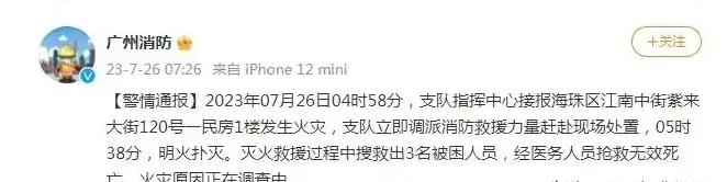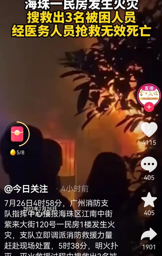 2023年7月26日凌晨,广州海珠发生了一起重大安全事故——火灾!这起火灾引起了人们的极大关注。这起火灾的发生,给当地居民带来了巨大的伤害和恐惧。据报道,火灾发生后不久,就有三名无辜的人在火势蔓延中遇难。