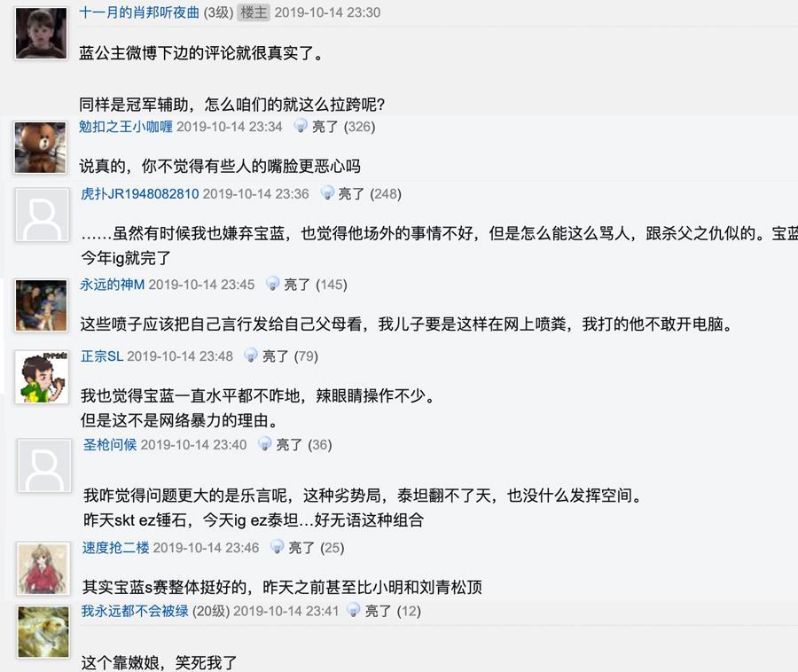 虽说比赛输了需要发泄可以理解,但如此低素质的爆破选手着实是有些太过了,这不在知晓宝蓝微博被爆破后,就有网友在论坛中聊起了这个话题,有网友表示“虽然有时候我也嫌弃宝蓝,也觉得他场外的事情不好,但是怎么能这么骂人,跟杀父之仇似的,宝蓝现在心态要是崩了,那今年ig就完了。”